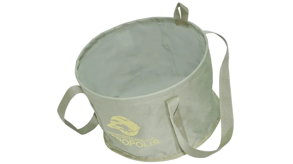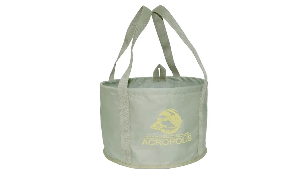 ВР-1а Відро рибальське для приготування прикормки на рибалці Acropolis. Виготовлене з міцного водонепроникного матеріалу поліестер 600D, стійкого до протирань. В середині має спеціальне захисне покриття, яке не дозволяє прикормці потрапляти в шви та тканину, що забезпечує легкість у догляді за відром. Завдяки вбудованому металевому кільцю, відро легко розкладається і створює комфорт для процесу замісу. Легко миється, швидко висихає і не впитує запахи.
