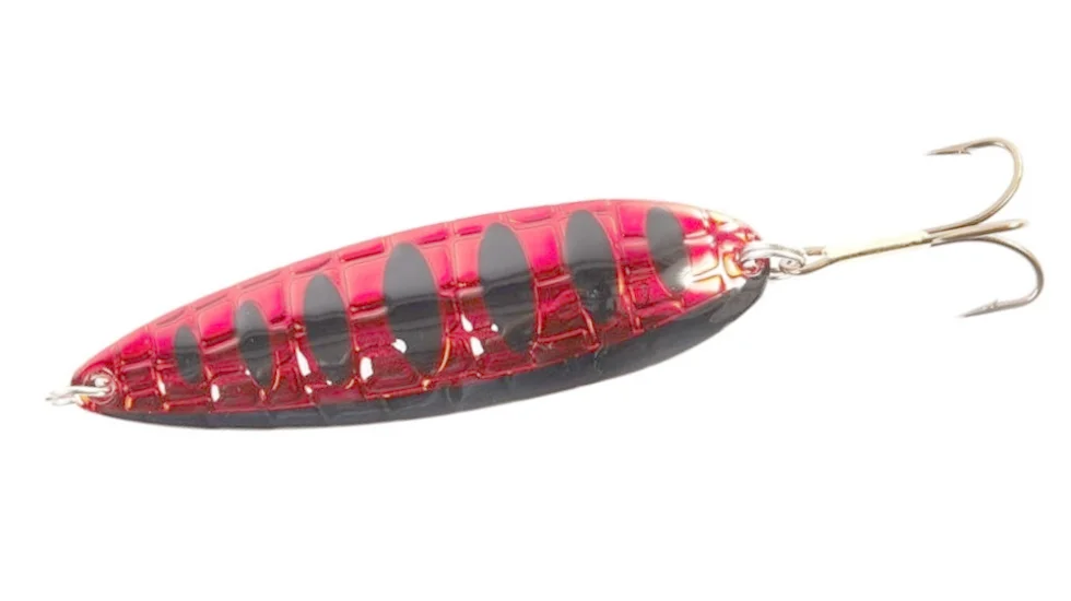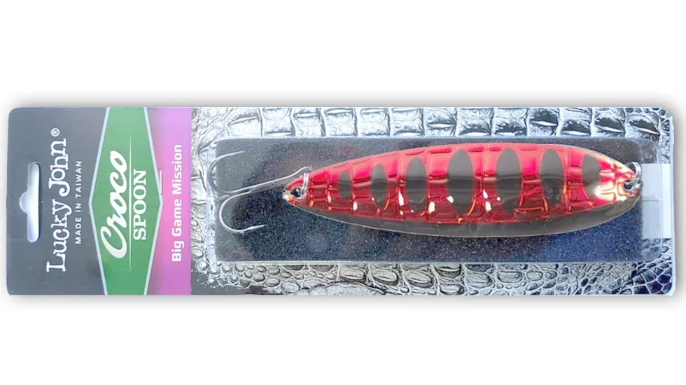 Блешні серії Croco Spoon Big Game виконані в незвичайному дизайні. Рифлення пластини зроблено не у вигляді луски риби, як у більшості аналогічних моделей, а з імітацією шкіри крокодила. Створені такі приманки для полювання на мілководних ділянках, а також для того, щоб шукати активну рибу, обловлюючи великі ділянки. Пластина з невеликим вигином рухається плавно, виляючи при цьому з боку в бік. Як проводки найкраще підходить звичайна рівномірка. Зупинки і паузи пожвавлять гру, а також дозволять блешні опуститися на дно. Саме момент вільного планування блешні і стає ключовим для нападу хижака. Маса представлених тут приманок - 18 гр. Для більшої схожості з забарвленням живої рибки дизайн доповнений смужками.