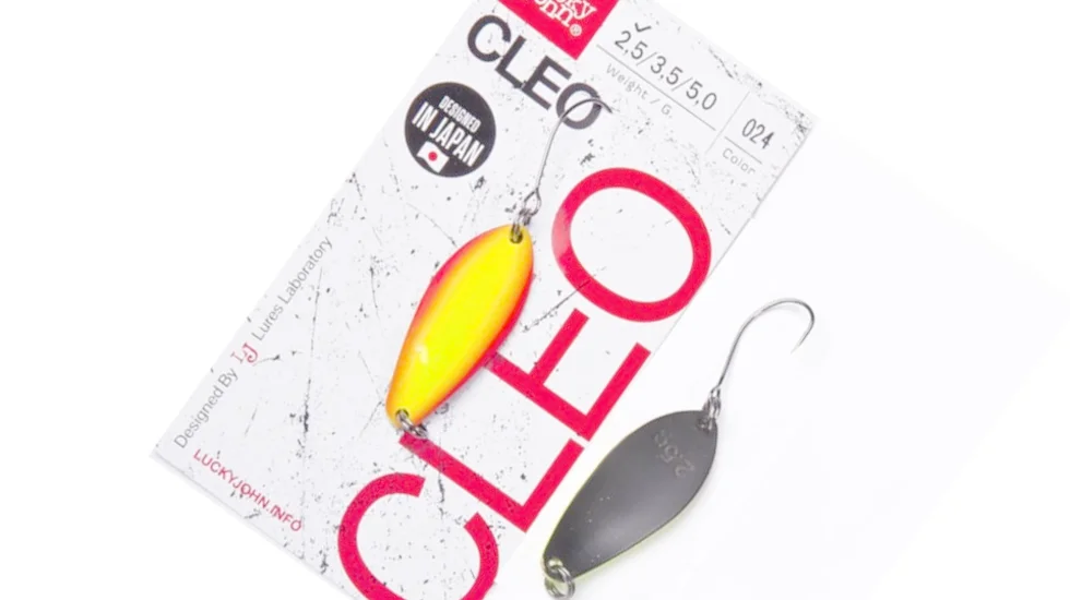 Лінійка блешень Cleo від фірми Lucky John призначена для форелевої риболовлі. Ця колебалка володіє якісним покриттям, яке відблискує при проводці. Ці відблиски на відстані привернуть увагу примхливої форелі. Геометрія самої блешні продумана для яскравої гри і хороших польотних якостей. Навіть при проводці в неквапливому темпі ця колебалка демонструє дуже активну гру, тому вона може розворушити і пасивну рибу. Довжина представленої модифікації складає 3,1 см., а важить вона 2,5 см. Для прихильників риболовлі за принципом «зловив-відпусти» дуже важливим плюсом даної приманки є те, що одинарний гачок не має борідки.