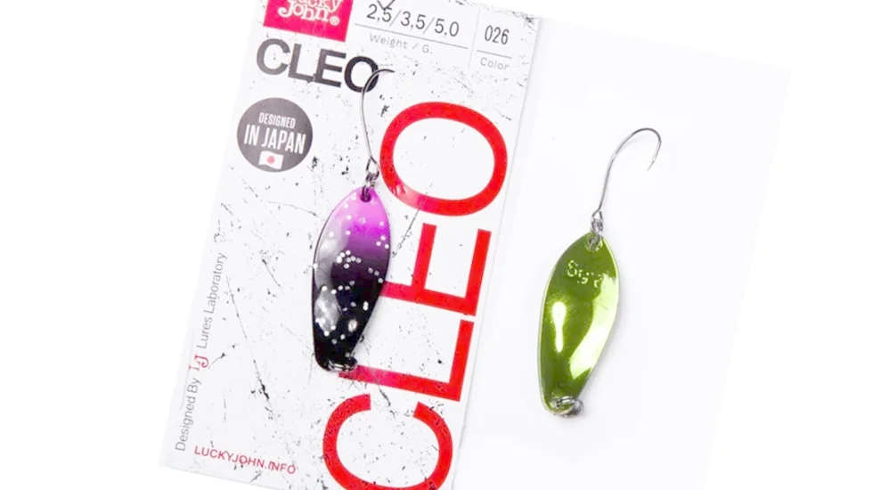 Лінійка блешень Cleo від фірми Lucky John призначена для форелевої риболовлі. Ця колебалка володіє якісним покриттям, яке відблискує при проводці. Ці відблиски на відстані привернуть увагу примхливої форелі. Геометрія самої блешні продумана для яскравої гри і хороших польотних якостей. Навіть при проводці в неквапливому темпі ця колебалка демонструє дуже активну гру, тому вона може розворушити і пасивну рибу. Довжина представленої модифікації складає 3,1 см., а важить вона 2,5 см. Для прихильників риболовлі за принципом «зловив-відпусти» дуже важливим плюсом даної приманки є те, що одинарний гачок не має борідки.