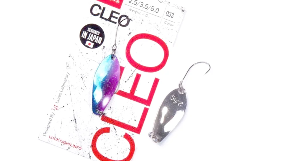 Лінійка блешень Cleo від фірми Lucky John призначена для форелевої риболовлі. Ця колебалка володіє якісним покриттям, яке відблискує при проводці. Ці відблиски на відстані привернуть увагу примхливої форелі. Геометрія самої блешні продумана для яскравої гри і хороших польотних якостей. Навіть при проводці в неквапливому темпі ця колебалка демонструє дуже активну гру, тому вона може розворушити і пасивну рибу. Довжина представленої модифікації складає 3,1 см., а важить вона 2,5 см. Для прихильників риболовлі за принципом «зловив-відпусти» дуже важливим плюсом даної приманки є те, що одинарний гачок не має борідки.