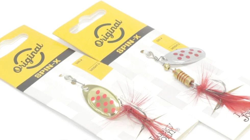 Серія блешень Spin X Round складається з чотирьох моделей, які відрізняються між собою вагою. Представлена тут приманка важить 8 гр. Вона проста в управлінні і може застосовуватися для лову різних хижаків. Оснащена округлою пелюсткою. Тому в порівнянні з блешнями, оснащеними витягнутими пелюстками, їх гра повільніша. Приманка Spin X Round добре підходить для лову пасивної риби. Гачок прихований під опушкою з червоного пір'я. Це доповнення потрібно не тільки для маскування. Пір'я також роблять гру більш провокуючою, змушуючи хижака напасти саме на гачок. Забарвлення дуже яскраві, тому приманку буде добре видно в каламутній воді. Пелюстка доповнена плямами, щоб блешня була більш схожа з живою рибкою.