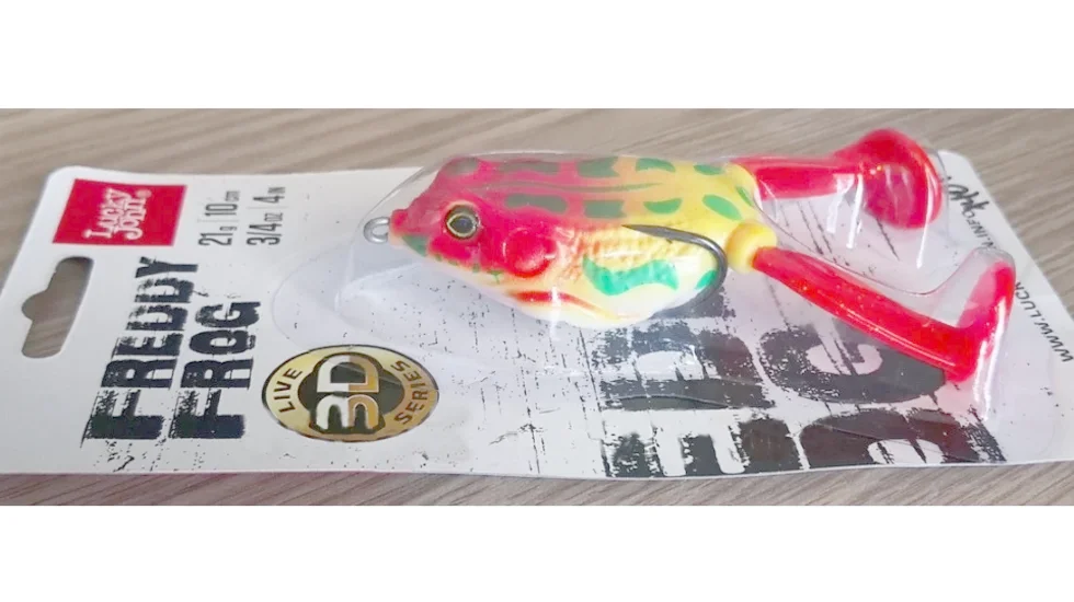 FREDDY FROG - м'ягкі приманки, які імітують жаб, рибалки використовують для лову на поверхні серед водної рослинності. Спіймати на таку приманку можна як велику щуку, так і більш екзотичну здобич - змієголова. Тіло «жаби» від фірми Lucky John виконано з м'якого силікону. При клюванні порожнистий м'який корпус легко продавлюється під могутніми щелепами хижака, оголюючи жала подвійного гачка. До речі, саме завдяки тому, що вістря звернене вгору, «жаба» без зусиль проходить зарослі ділянки водойми. Лапки створюють на поверхні водойми таку гру, яка приверне увагу великого хижака, який бажає поласувати таким ситним «обідом», як жаба. Вага модифікації становить 21 гр., а її довжина – 6,4 см.