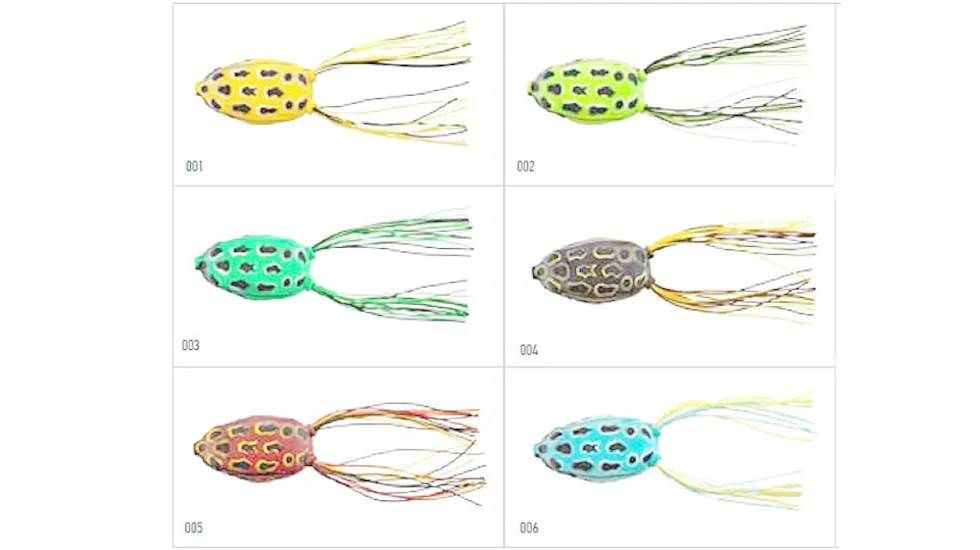 Принади у вигляді жаби застосовуються для риболовлі в зарослих місцях на поверхні водойми. Нерідко великі хижаки люблять ховатися в таких заростях в очікуванні ситного «обіду». Приманка Frog своєю активною грою якраз і розрахована на ловлю такої риби. Здобиччю може стати щука або більш екзотична особина - змієголов. Тіло «жаби» порожнисте і дуже м'яке, тому під час атаки хижака воно легко продавлюється, відкриваючи жала гострого подвійного гачка. Численні силіконові нитки, які своїми коливаннями імітують рухи лапок жаби, відповідають за привертання уваги хижої риби. Довжина представленої моделі становить 6,5 см., А її вага - 15 гр.