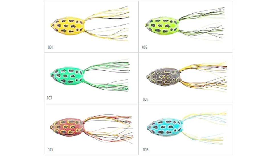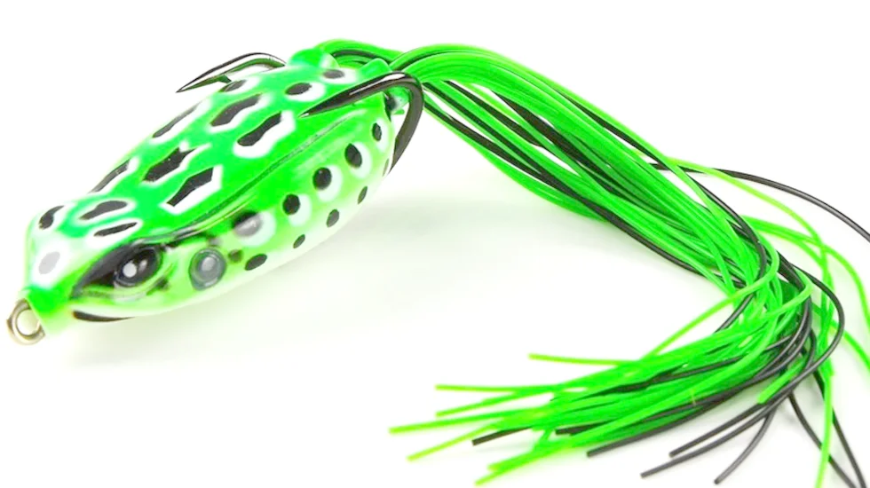 Принади у вигляді жаби застосовуються для риболовлі в зарослих місцях на поверхні водойми. Нерідко великі хижаки люблять ховатися в таких заростях в очікуванні ситного «обіду». Приманка Frog своєю активною грою якраз і розрахована на ловлю такої риби. Здобиччю може стати щука або більш екзотична особина - змієголов. Тіло «жаби» порожнисте і дуже м'яке, тому під час атаки хижака воно легко продавлюється, відкриваючи жала гострого подвійного гачка. Численні силіконові нитки, які своїми коливаннями імітують рухи лапок жаби, відповідають за привертання уваги хижої риби. Довжина представленої моделі становить 6,5 см., А її вага - 15 гр.