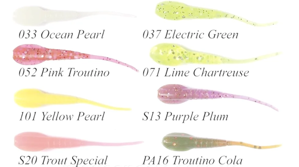 Беззахисні пуголовки - легка здобич для багатьох хижаків, починаючи від всеядного ротана до примхливої форелі. Експерти Лакі Джон представили серію Troutino, що імітує такий кормовий об'єкт. Для більшої привабливості матеріал приманки просочений стійким атрактантом з насиченим ароматом креветки. Такий запах збудить апетит навіть у пасивної риби в холодній воді. Міцний матеріал зберігає еластичність і в зимовий час, тому слаг можна застосовувати цілий рік і для мікроджига, і в парі з блешнею. Важить Troutino від Lucky John всього лише 0,3 гр при довжині 4,3 см. Рухомий слаг добре працює і на рознесених оснащеннях. Привабливо грає модель на ступінчастій проводці, ривочками, підкидами. Крім хижаків, принесе "силіконка" клювання і мирної риби, типу плитки, уклейки, ляща, і т.д.