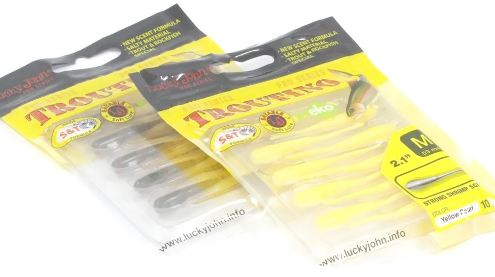 Беззахисні пуголовки - легка здобич для багатьох хижаків, починаючи від всеядного ротана до примхливої форелі. Експерти Лакі Джон представили серію Troutino, що імітує такий кормовий об'єкт. Для більшої привабливості матеріал приманки просочений стійким атрактантом з насиченим ароматом креветки. Такий запах збудить апетит навіть у пасивної риби в холодній воді. Міцний матеріал зберігає еластичність і в зимовий час, тому слаг можна застосовувати цілий рік і для мікроджига, і в парі з блешнею. Важить Troutino від Lucky John всього лише 0,3 гр при довжині 4,3 см. Рухомий слаг добре працює і на рознесених оснащеннях. Привабливо грає модель на ступінчастій проводці, ривочками, підкидами. Крім хижаків, принесе "силіконка" клювання і мирної риби, типу плитки, уклейки, ляща, і т.д.