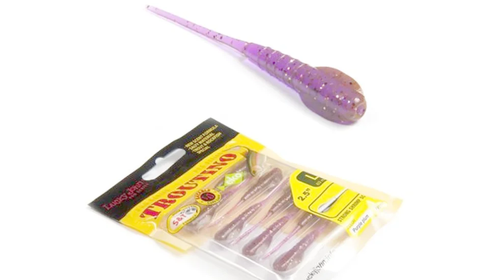 Беззахисний пуголовок буде легкою здобиччю як для хижаків, від всеядного ротана до примхливої форелі, так і для мирних видів риби. Модель Troutino 53 своїм зовнішнім виглядом і грою при проводці імітує цей кормової об'єкт, тому може вважатися універсальною. Довжина слага становить 5,3 см, вага 0,57 гр. На ступінчастій анімації, підкидах або простому ворушінні кінчиком вудилища тоненький рухливий хвостик у даній приманці звивається, спокусливо коливається. Для більшої привабливості експерти Lucky John просочили Troutino 53 стійким атрактантом з насиченим ароматом креветки. Еластичний матеріал не втрачає своїх властивостей навіть на холоді, тому слаг можна застосовувати цілий рік. Приманка добре підійде для мікроджига, може використовуватися для рознесених оснасток. Велика кількість колірних рішень дозволяє вибрати варіант для конкретної здобиччі і умов.