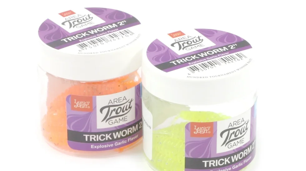Компанія Lucky John розробила нову програму для любителів лову ставкової форелі. Серія приманок Trick Worm входить в лінійку спеціалізованих форелевих приманок. Крім риболовлі на прісноводних ставках, ця модель може використовуватися для рокфішингового лову. Об'ємна приманка з ребристим тілом добре підходить для оснасток "дроп-шот", "джиг ріг", каролінських і техаських монтажів. Вона представлена в яскравих забарвленнях, традиційно використовуваних для форелевої риболовлі. Принади Trick Worm - "їстівні". Вони оброблені великою кількістю маслянистого атрактанта з насиченим запахом часнику. Принади упаковані в пластикові баночки з герметичною кришкою, які краще зберігають аромат атрактантів. У кожній банці - 10 шт.