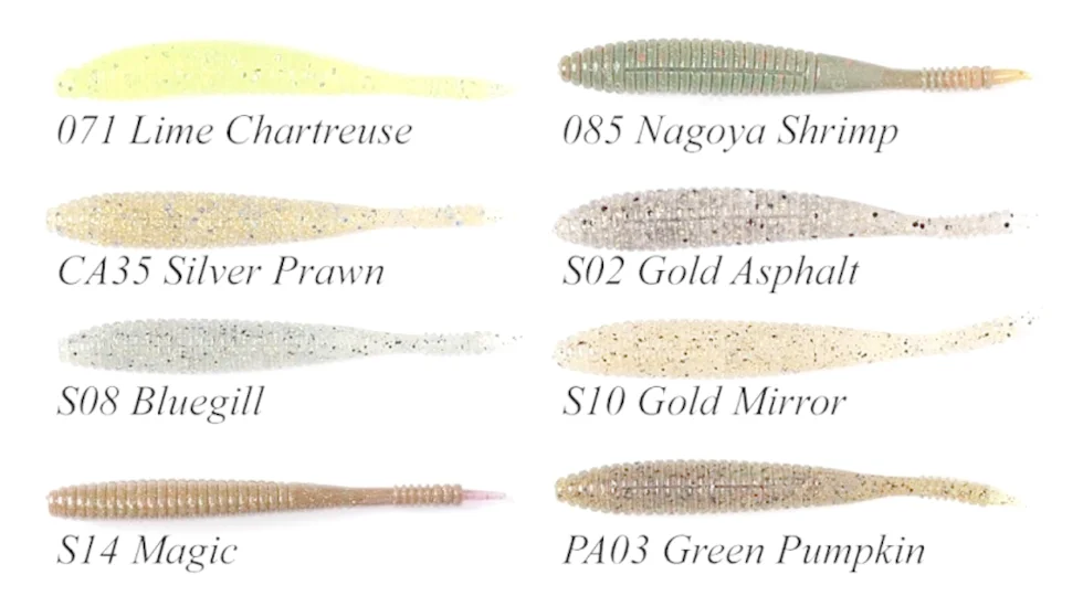 Два тоненьких коротких щупальця на довгому хвості з кільцевим рифленням - одна з відмінностей моделі S-Shad. Геометрія її вузького ребристого тіла може нагадувати або хробака, або п'явку. Представлена приманка "оживає" при легкому русі вудлища. Красива гра її природна, привертає навіть пасивних і дуже обережних риб. Для більшої ефективності експерти бренду Lucky John просочили м'яке тіло S-Shad стійким атрактантом з насиченим запахом креветки. При русі слаг залишає за собою ароматний слід, по якому хижак знайде "частування" навіть в каламутній воді. Габарити моделі 9,6 см, вага 3,8 гр. Такі розміри сподобаються і судаку, і зубастий щуці, і горбачу-окуню. Показники слага добрі як зі звичайними джиговими голівками, так і на різних рознесених оснащеннях. На ривках з відвідним повідцем моделі S-Shad починають метатися по сторонам. При обловлюванні порослих зон дану приманку оснащують офсетником, для якого в тілі приманки є спеціальний паз.
