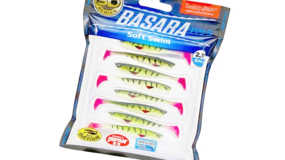 Ще одна реалістична, створена за 3D-принципом приманка від розробників Лакі Джон. Віброхвіст імітує забарвленням і геометрією прогонистого малька. Модель Basara Soft Swim має габарити в довжину 6,3 см і масу 1,63 гр. Підійде для щучої, окуневої і судакової риболовлі. Потужна п'яточка на тонкому хвості забезпечує потужні гідроакустичні вібрації, які виманять хижаків з віддалених укриттів. Природна гра обдурить навіть вибагливу рибу. Крім того, експерти бренду Lucky John просочили Basara Soft Swim насиченим стійким атрактантом з ароматом креветки. Творці рекомендують оснащувати даний віброхвіст звичайним одинарником, двійником, джиг-голівкою. Оптимально використовувати вантажі масою від 5 до 12 гр.