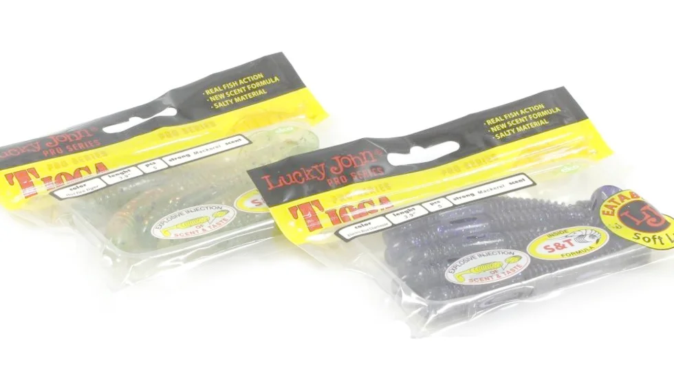 Хороша рухливість і жива інтенсивна гра - особливості моделі Tioga. Для цього експерти Лакі Джон наділили модель витягнутим з кільцевим рифленням тілом хробака і округлою п'ятою віброхвоста на плоскій тонкій підставі. Для більшої привабливості матеріал приманки містить склад Scent & Taste. Тому у воді Lucky John Tioga залишає за собою ароматний слід. Після клювання ця модель здається хижакові смачною, що змушує його довше тримати таке "частування" в пащі. Габарити моделі складають 7,5 см, а маса 2,5 гр. Приманку можна оснащувати одним, подвійним або офсетним гачком. Добре працює віброхвіст з джиг-голівкою або на рознесених монтажах. Розробники рекомендують довантаження від 3 гр до 10 гр, однак при полюванні на судака допустимо і більшу вагу. Крім ікластого хижака, серія сподобається і щуці, і всюдисущому окуню.