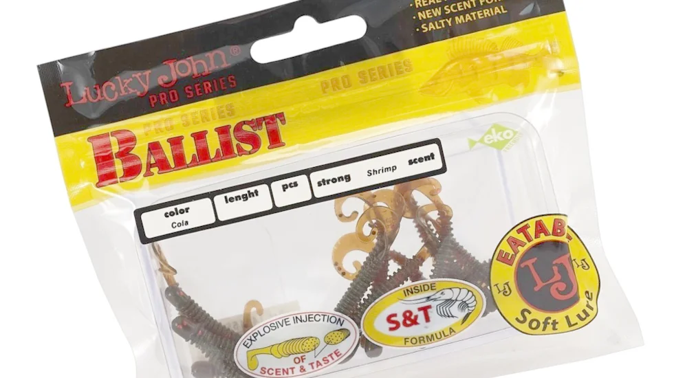 Витягнуте, вузьке, округле в перерізі тіло Ballist просякнуте ароматним атрактантом. Насичений запах креветки роздражнить навіть пасивних, млявих хижаків. Приманка має довжину 5 см і вагу 0,49 гр. Підійде для мікроджигового лову. Основна здобич - цікавий окунь, щучка і біла риба. Ребристе тіло Lucky John Ballist нагадує черв'яка або личинку. При проводці рифлення створює гідроакустичні мікровібрації. Маленький серповидний хвостик заманливо коливається. Модель добре працює на простій равномірці, коротких ривочках, сходинці і під час волочіння по дну. Віброхвіст можна оснащувати одинарним або офсетним гачком. Приманка підходить для оснащення джиг-голівкою, шарнірних і рознесених монтажів.
