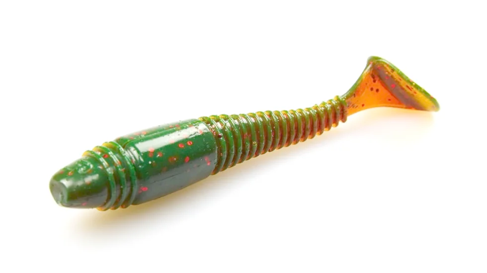 Збільшена, більш об'ємна геометрія витягнутого тіла Tioga Fat розроблена командою Лакі Джон для полювання на трофеї. Габарити приманки складають 10 см при вазі 8,95 гр. У порослих місцях її можна застосовувати на офсетнику без навантаження. Велика п'яточка на тонкому хвості створює потужні гідроакустичні вібрації, які підсилює глибоке поперечне рифлення тіла. Ребра надають моделі і велику рухливість. Експерти Lucky John просочили Tioga Fat складом до формули Scent & Taste Inside. Він наділяє модель ароматом макрелі і смаковими властивостями. Навіть після клювання риба не захоче випльовувати таке смачне "частування", що зручніше для підсічки. Спіймати з таким віброхвостом можна зубасту щуку, судака, сома і горбача-окуня.