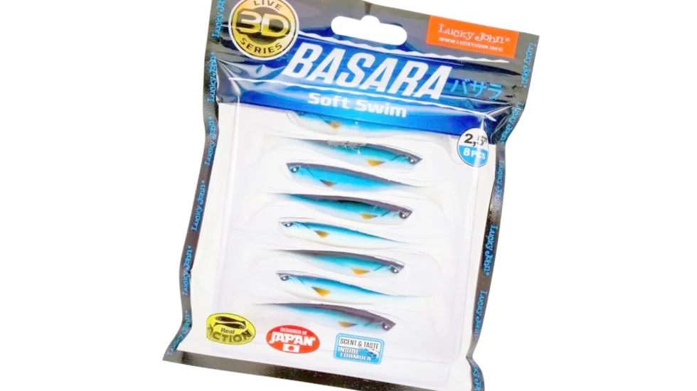 Ще одна реалістична, створена за 3D-принципом приманка від розробників Лакі Джон. Віброхвіст імітує забарвленням і геометрією прогонистого малька. Модель Basara Soft Swim має габарити в довжину 6,3 см і масу 1,63 гр. Підійде для щучої, окуневої і судакової риболовлі. Потужна п'яточка на тонкому хвості забезпечує потужні гідроакустичні вібрації, які виманять хижаків з віддалених укриттів. Природна гра обдурить навіть вибагливу рибу. Крім того, експерти бренду Lucky John просочили Basara Soft Swim насиченим стійким атрактантом з ароматом креветки. Творці рекомендують оснащувати даний віброхвіст звичайним одинарником, двійником, джиг-голівкою. Оптимально використовувати вантажі масою від 5 до 12 гр.