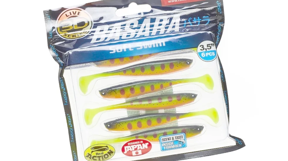 Прогониста, обтічна геометрія, потужна округла п'яточка на тонкому хвості - особливості представленої приманки. Вона замислювалася командою розробників Лакі Джон як натуралістична 3D-копія невеликої рибки - кормового об'єкта для зубастої щуки, судака або горбача-окуня. Модель має довжину 8,9 см, вага 3,4 гр. При проводці демонструє живу динамічну гру, п'ята створює сильні гідроакустичні вібрації. Крім того, для більшої ефективності фахівці Lucky John просочили еластичне тіло Basara Soft Swim ще й атрактантом з насиченим апетитним ароматом. Смачний запах креветки розтермосить навіть пасивних особин. Цей віброхвіст добре працює з класичними джиг-голівками, двійниками. Рекомендована маса вантажів від 7 гр. Можна використовувати одинарники або офсетники.
