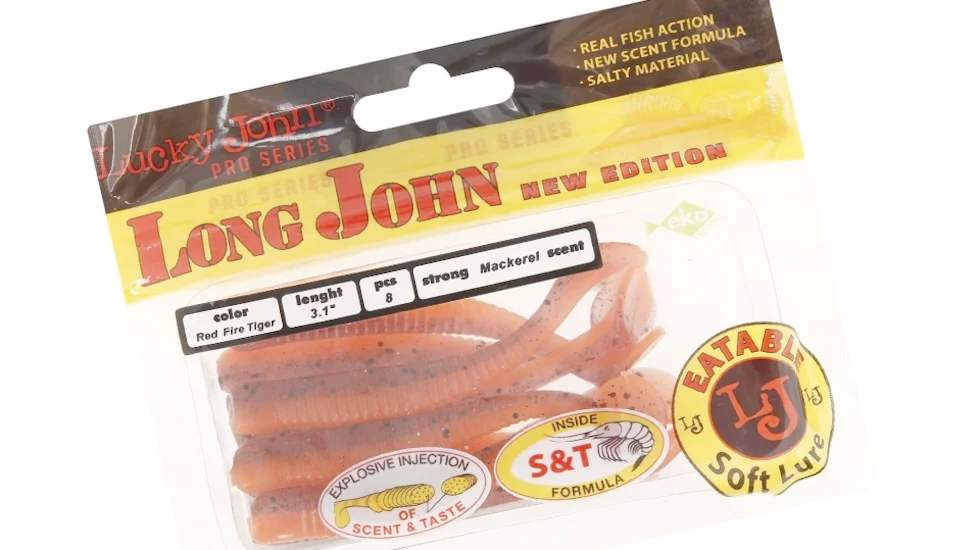 Вузькі, витягнуті габарити і розташована під широким кутом середніх розмірів п'ята - особливості моделі Long John 107. Геометрія приманки забезпечує середньоамплітудну гру з низькочастотними вібраціями: вони залучають навіть загальмовану, мляву рибу. Крім того, приманка не створює сильного опору потоку води, не виштовхується на поверхню. Експерти Lucky John стверджують, що з Long John 107 можна обловлювати тихі заводі і місця з течією, не змінюючи важки. Для більшої привабливості віброхвіст просочений атрактантом з ароматом макрелі. Смачний запах розбудить апетит у ледачих хижаків в холодній воді. Довжина приманки 10,7 см і вага 7,7 гр. Серію називають судаковою, однак приносить вона клювання також зубастої щуки і горбача-окуня. Добре працює модель на шарнірних монтажах, з джиг-голівкою і інших оснащеннях.
