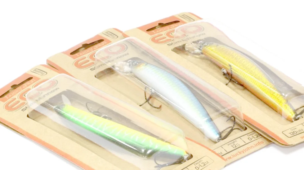 Eco Slim Minnow від фірми Lucky John - відмінно збалансовані воблери-міноу, що мають позитивну плавучість. Ця приманка ідеально підійде для активних пошуків хижака на великих акваторіях і для виманювання з укриття риби. При твічинговій проводці Slim Minnow дуже чутливий до будь-яких рухів вудилища. На різкому твічі приманка створює дуже сильні вібрації при русі у воді, що поширюють гідроакустичні коливання на далекі дистанції. На паузах під час підмотки воблер здійснює плавні погойдування з боку в бік, що дуже ефективно стимулює хижака на атаку. Дана серія доповнює нову лінійку Lucky John ECO Series, анонсовану брендом до літнього спінінгового сезону 2016 року. Воблери ECO розроблялися як доступні за ціною приманки, мають при цьому високу якість. При розробці серії також був зроблений натиск на екологію. Використання пластика в упаковці приманок LJ ECO зведено до мінімуму, а основний матеріал для упаковки - екологічно чистий картон.