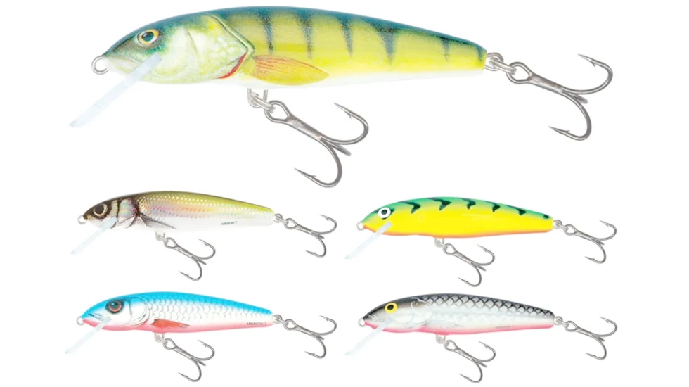 Воблер Salmo Minnow має класичну форму і випускається компанією Salmo c 1991 року в чотирьох розмірах: 5, 6, 7, 9 см, буває трьох типів: плаваючого (F), тонучого (S), глибоководного (SDR). Будь-який рибалка підбере собі потрібний Minnow. Лопатка з полікарбонату має підвищену зносостійкість, а високоякісні трійники VMC Black Nickel самі зачеплять рибу навіть без Вашої участі. Кожен воблер пройшов індивідуальне регулювання і тестування. Верткий, енергійний і смертельно небезпечний для риби воблер виручить в період неклювання або при пошуку риби на малознайомій водоймі. Плаваючі моделі Minnow краще працюють на повільній проводці проти течії з паузами і ворушіннями, а тонучі - краще закидати вгору за течією і робити проводку в середніх шарах води, чергуючи досить амплітудні ривки з паузами. Головний секрет цієї приманки - кожна проводка повинна містити одну серію інтенсивних ривків з паузами. Рекомендований для лову окуня, щуки, судака, жереха, голавля.