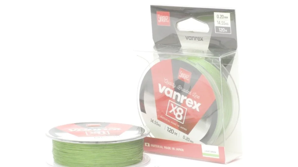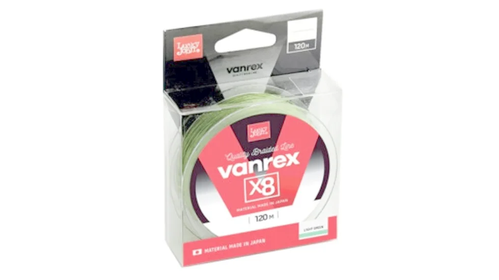 Для виготовлення шнурів лінійки Vanrex X8 експерти Лакі Джон застосували матеріали японського виробництва. Вісім жил з високомодульного поліетилену сплетені максимально щільно, це забезпечує високу міцність і одночасно стійкість до абразиву. Тому розробники Lucky John позиціонують Vanrex X8 як універсальний і всесезонний. Круглий перетин і ковзка, гладка поверхня сприяють поліпшенню кастингових характеристик плетінки. Випускається вона в зручному для спінінга розмотуванні в 120 м. Однак підійде шнур (із застосуванням повідця) і для донного лову. Для того, щоб не виділятися на фоні водоростей або в каламутній воді, він забарвлений в зелений колір.