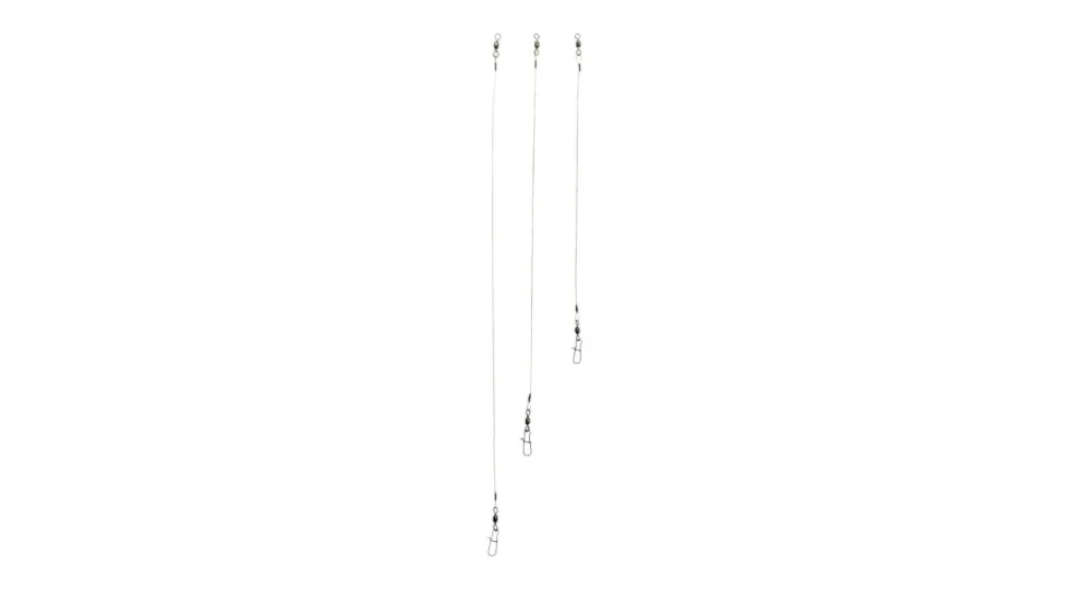 Повідці плетіння 7х7, виготовлені з легованої сталі фірмою AMERICAN FISHING WIRE і вироблені в США. Вони складаються з 49 переплетених між собою сталевих мікродротів. Ці повідці дуже м'які і еластичні - НЕ жорсткіше, ніж звичайна монофільна волосінь того ж діаметру. Повідці дуже стійкі до всіляких деформацій і не втрачають своїх властивостей після потужних навантажень і «обов'язкових» перегинів в пащі великого хижака. Після виведення крупної риби вони не перекручуються і залишаються завжди прямими, тобто не мають залишкової «пам'яті». Наявність міцного покриття з нейлону підвищують їх стійкість до механічних пошкоджень, і приховує смак «заліза». Повідці укомплектовані високоякісними японськими вертлюжками і застібками, з їх кріпленням за допомогою обтискних трубочок. Підбірка кріпильної арматури здійснена відповідно до розривного навантаження на повідковий матеріал.