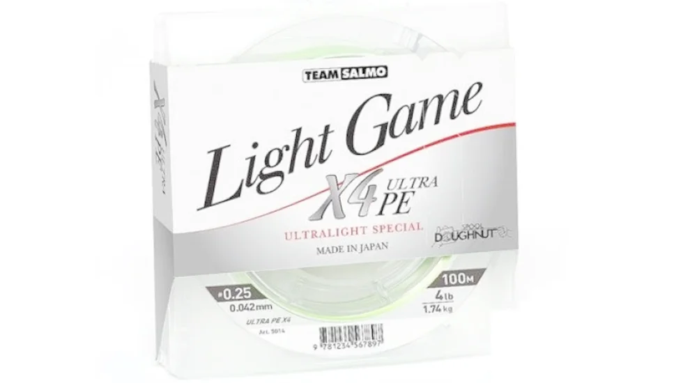 Високоякісний РЕ шнур спортивного класу, сплетений з 4-х пасм. Шнур спеціально розроблений для лову лайтовими і ультралайтовими снастями. Виготовляється діаметром від 0,042 до 0, 064мм, з розривним навантаженням 4-6 lb. Поставляється в індивідуальній упаковці в розмотуванні по 100 м. Шнур воготовляється тільки в Японії.