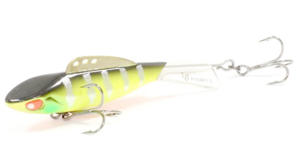Всі принади з лінійки Pro Series розроблялися для бренду Lucky John фахівцями з Японії. Представлений тут балансир Mebaru 77 теж не виняток. Модель міцна, так як корпус і хвіст - єдине ціле, виконані з морозостійкого пластика. Спереду є широкий плоский майданчик, який вносить "родзинку" в гру. Вивірене балансування робить приманку стабільною як на великій глибині, так і на течії. Балансир довжиною 7,7 см і вагою в 27 гр може обловити вири і ями в пошуках трофейних щуки і судака. Особливість приманки Lucky John модельного ряду Pro Series Mebaru 77 - наявність латунного спинного плавника. Три отвори для кріплення волосіні потрібні, щоб міняти характер гри. Використання переднього - робить гру більш агресивною, з часткою вертикальної складової. Заднього - спокійної і менш амплітудної. Малювати широкі "вісімки", обловлюючи максимальний простір під лункою, балансир буде, якщо волосінь закріпити за середній отвір. Творці, щоб виключити зачепи за кромку льоду, не стали використовувати стандартні впаяні одинарники. У Mebaru 77 є два трійника. Задній прикріплений до наскрізного дротового каркасу, який виходить з кромки хвоста. Цей трійник при бажанні можна зняти.