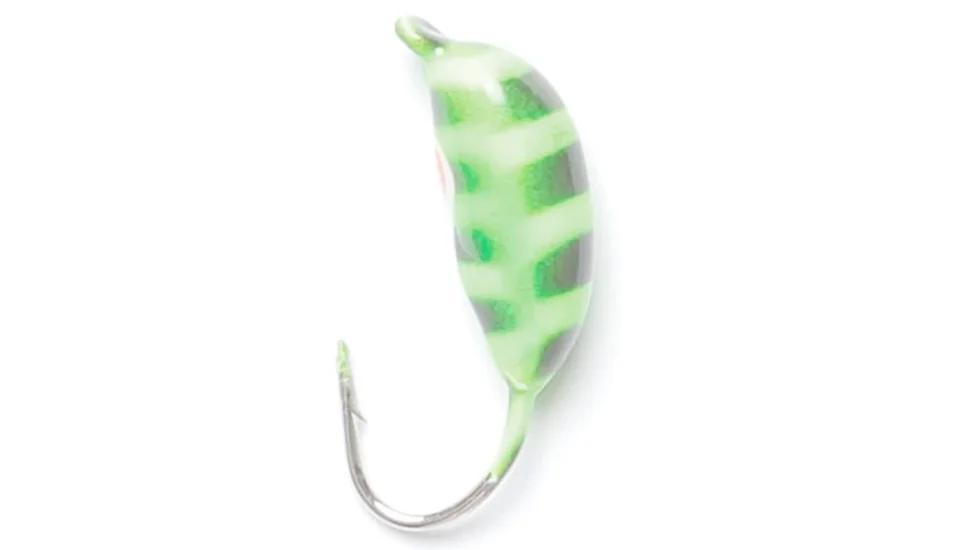 Мормишка вольфрамова з петелькою. Ще один варіант уловистою приманки Банан. Тепер ця приманка стала компактніше і важче. Яскраве забарвлення приманок, з чергуються поперечними смужками із стійкого полімерного покриття, завжди буде привабливою для різної риби. на цю приманку можна ловити з успіхом і без насадки.